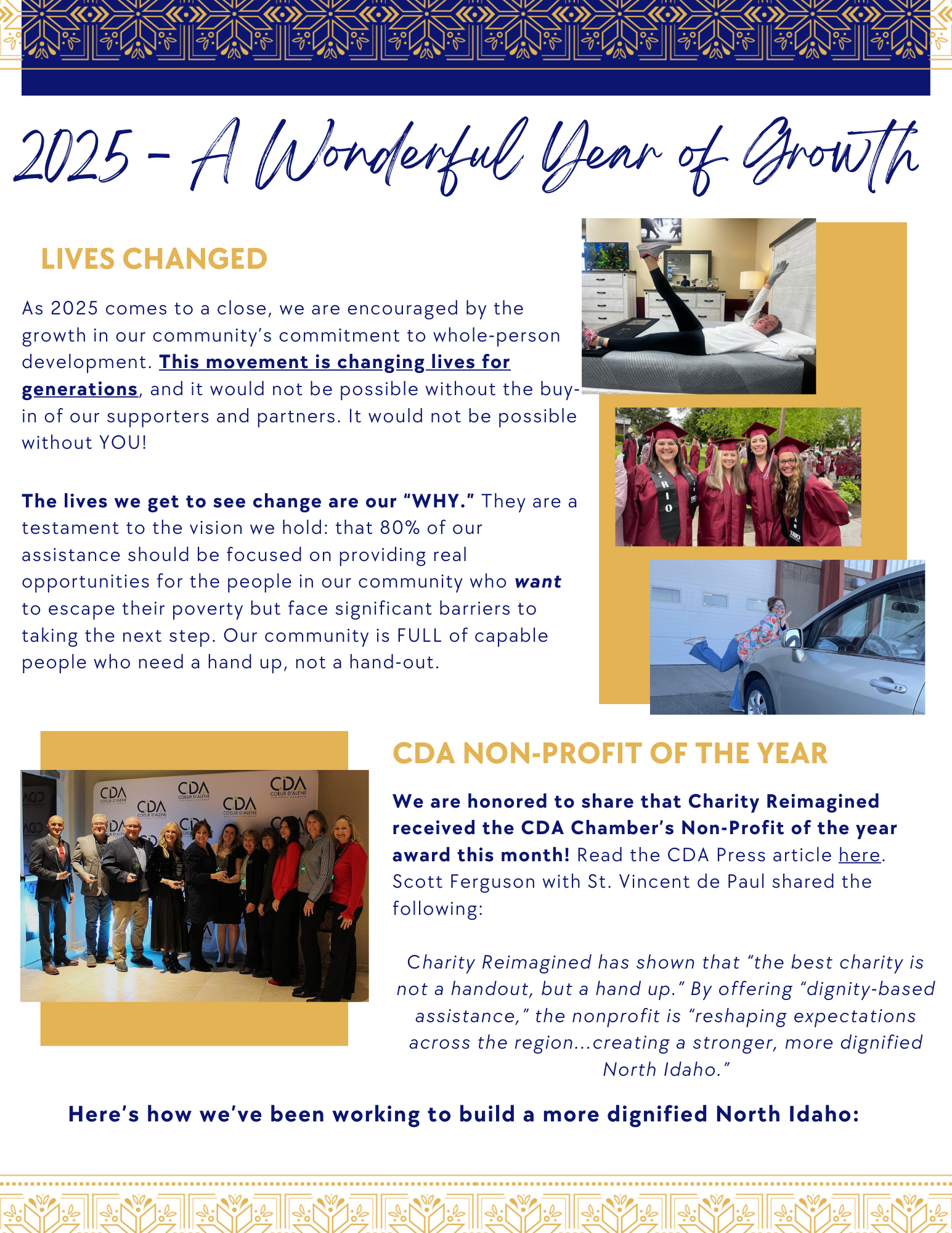 No matter how big or small, no single church, charity, or “helping” organization can meet all needs. But, by all of us working together through communication and collaboration to identify categories of care and responding appropriately, pride can replace shame, hope can replace despair, and lives can be changed.