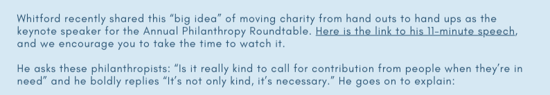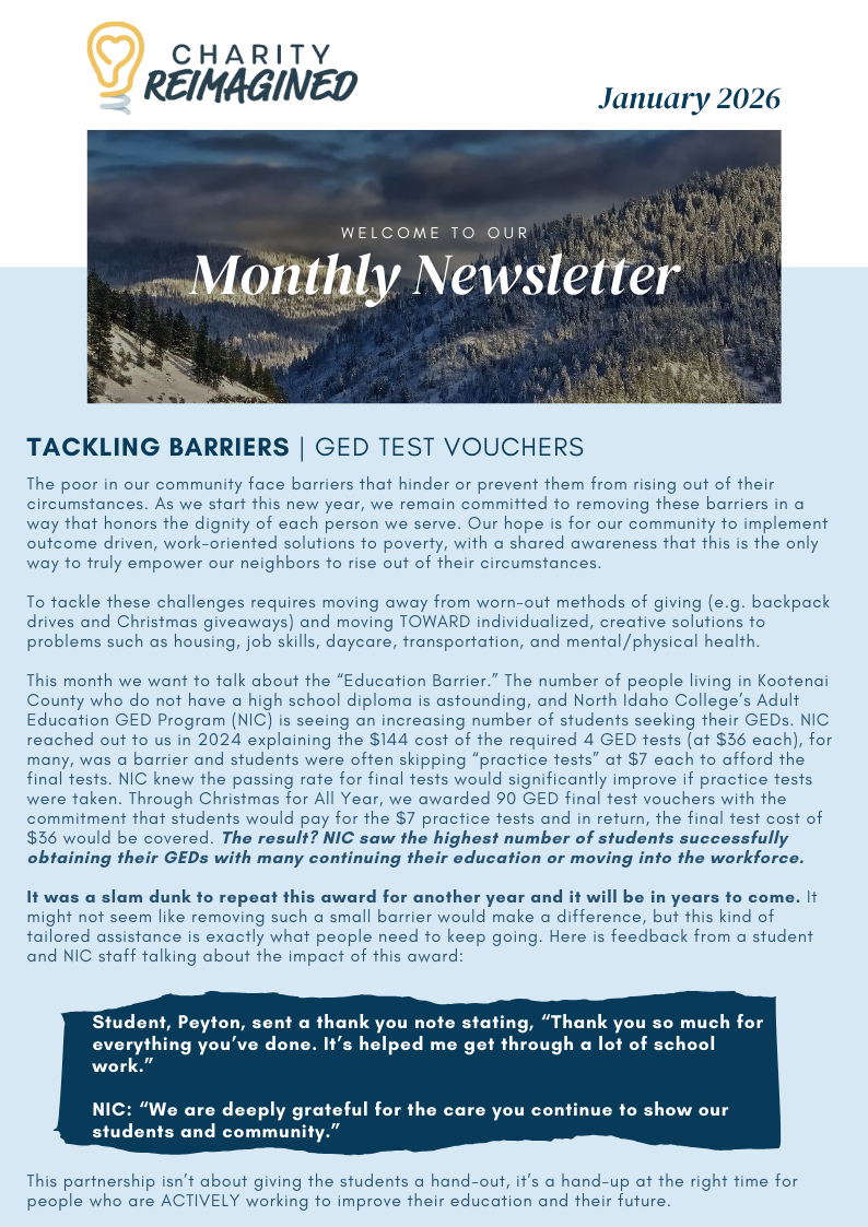 No matter how big or small, no single church, charity, or “helping” organization can meet all needs. But, by all of us working together through communication and collaboration to identify categories of care and responding appropriately, pride can replace shame, hope can replace despair, and lives can be changed.